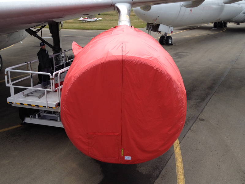 MVP© covers are designed and constructed specifically to allow engines to be stored on-aircraft in open, outside storage: the engines do not need to be removed from the aircraft or stored inside!
